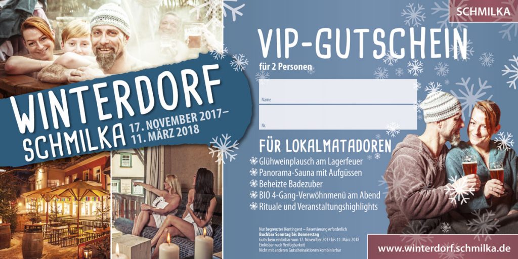 Winterdorf-Gutscheine für VIP-Kunden Design von Winterdorf-Gutscheinen für VIP-Kunden Gutscheine sind beliebte Geschenke. Ob mit Übernachtungen oder als Tagesprogramm – in Schmilka sind verschiedene Leistungspakete erhältlich. Natürlich auch als Gutscheine. webmaster2021-03-27T12:27:41+01:00Flyer gestalten lassen | Referenzen, Grafikdesign| Bitte teilen Sie bitte diesen Artikel! Danke. FacebookTwitterRedditLinkedInWhatsAppTumblrPinterestVkXingE-Mail
