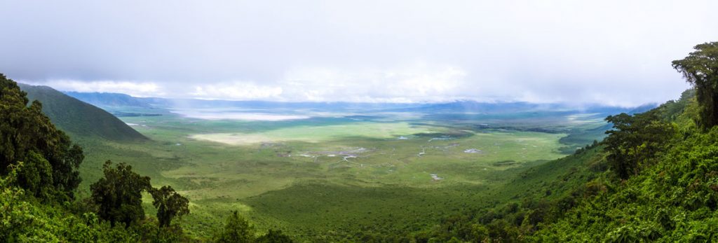Die Fahrt am Bergrücken des Ngorongoro-Kraters auf den Kraterrand gestaltet sich relativ unspektakulär: geradezu wie in einem deutschen Mittelgebirge. Doch am Viewpoint angekommen eröffnet sich ein atemberaubender Ausblick über den ganzen Krater. Fantastisch.